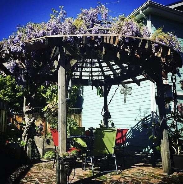 which doubles as a home for the timelessly romantic wisteria vine.